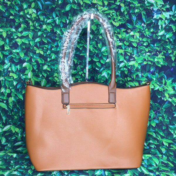 Ainsley is a beautiful handbag. She comes with a shoulder strap and a bonus bag, that can be used as a crossbody. She is made if faux leather. Ainsley has interior slip and zippered pockets.